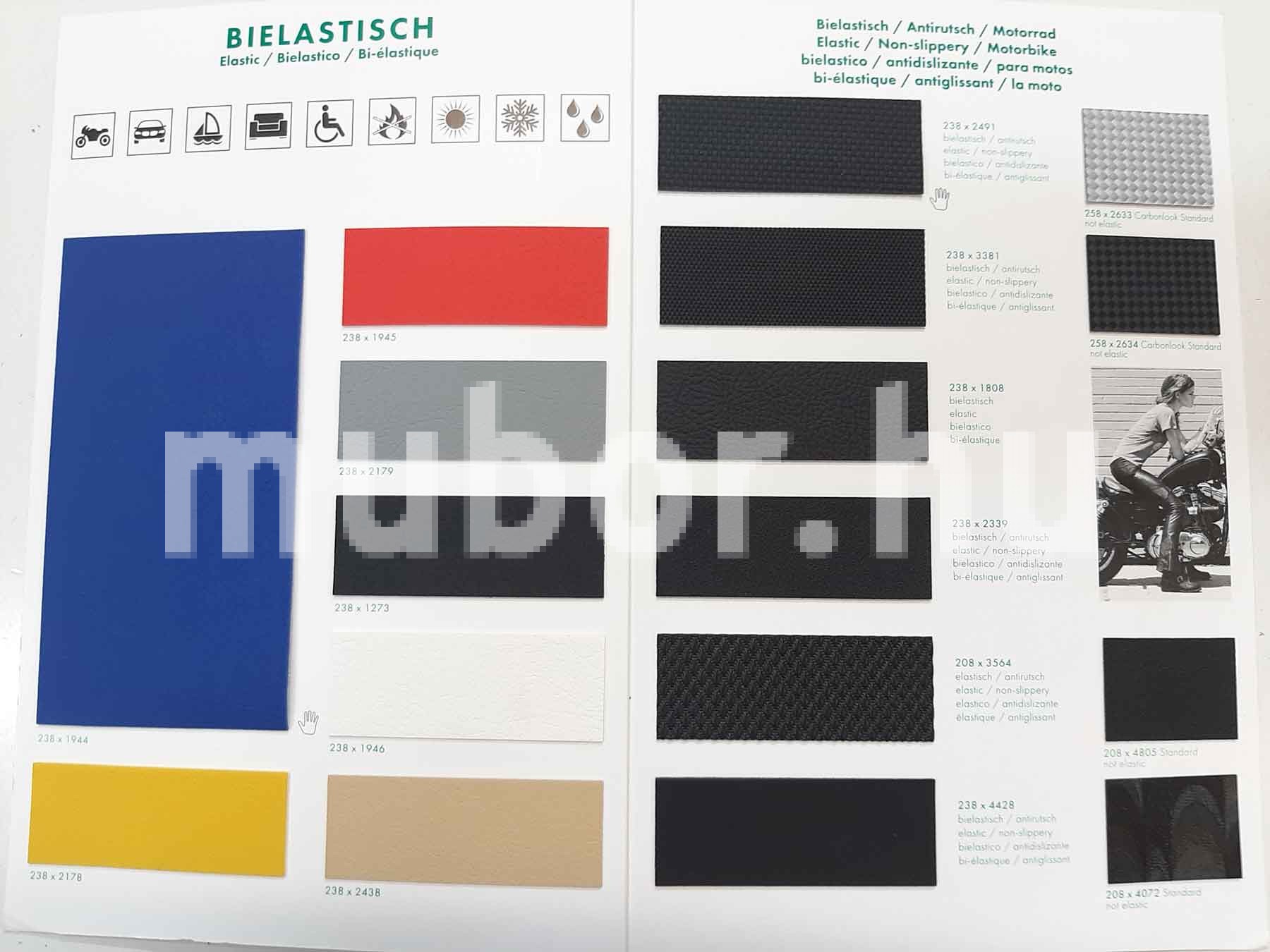 Bielastic néven is ismerhető kiváló motoros műbőr.