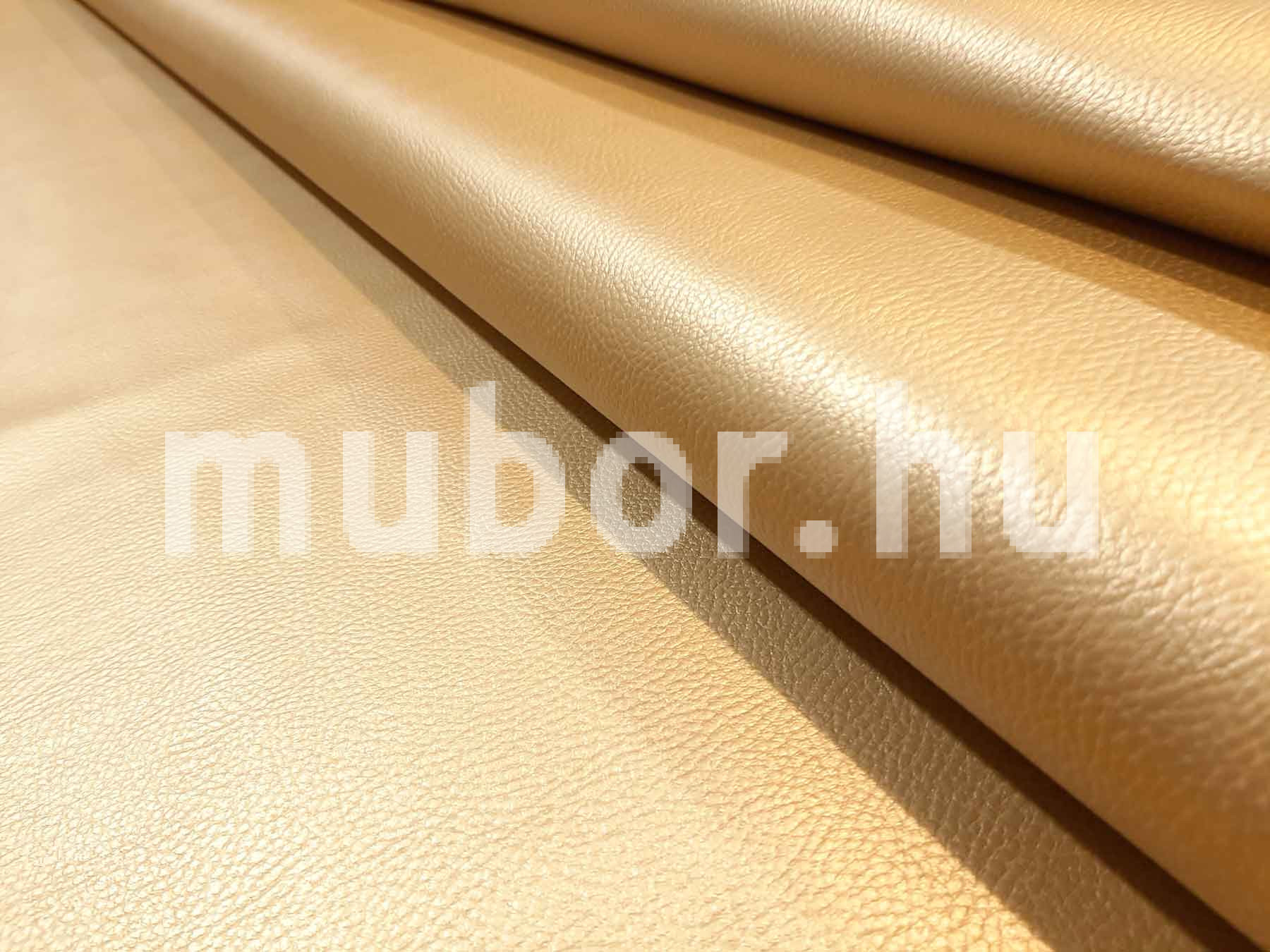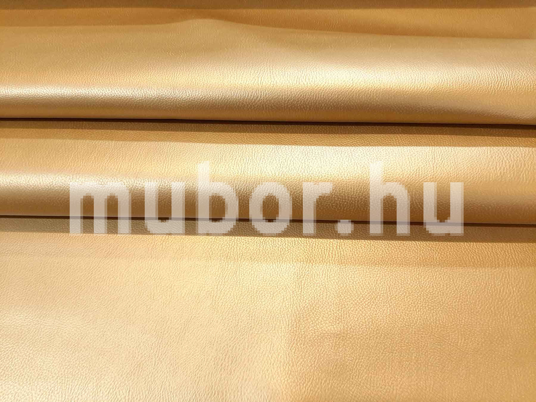 Karia arany gold műbőr – a további színeivel a szivárványt teljesíti ki. 37 színben is rendelhető, finoman erezett műbőr, a fémes arany szín a dekorációk kedvence. Esztétikus megjelenés kölcsönöz az anyagból készített, vagy ezzel díszített tárgyaknak, szobának, a bútoroknak, és táskának.