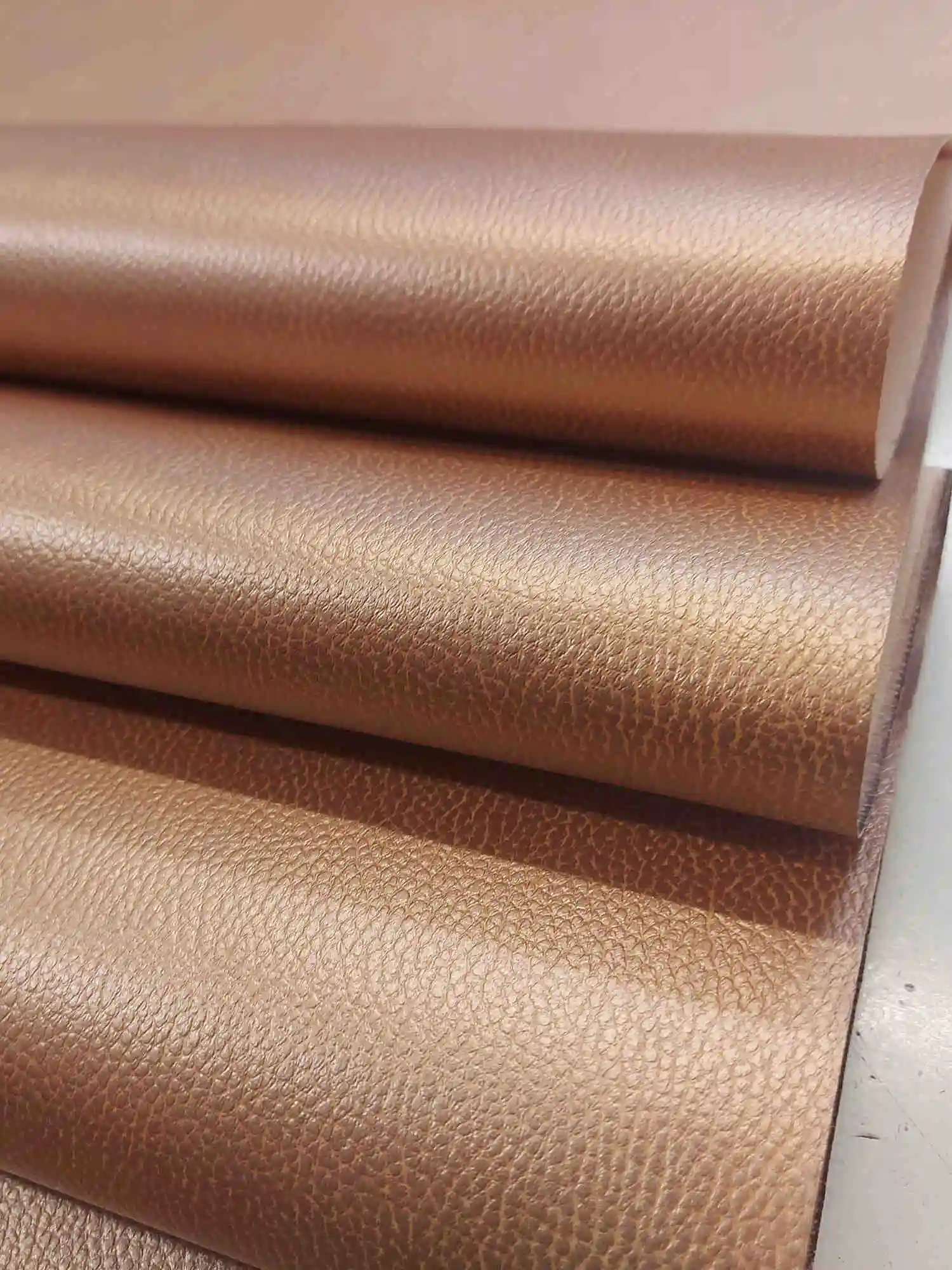 Karia óarany cuivre műbőr – a további színeivel a szivárványt teljesíti ki. 37 színben is rendelhető, finoman erezett műbőr, a fémes arany szín a dekorációk kedvence. Esztétikus megjelenés kölcsönöz az anyagból készített, vagy ezzel díszített tárgyaknak, szobának, a bútoroknak, és táskának.