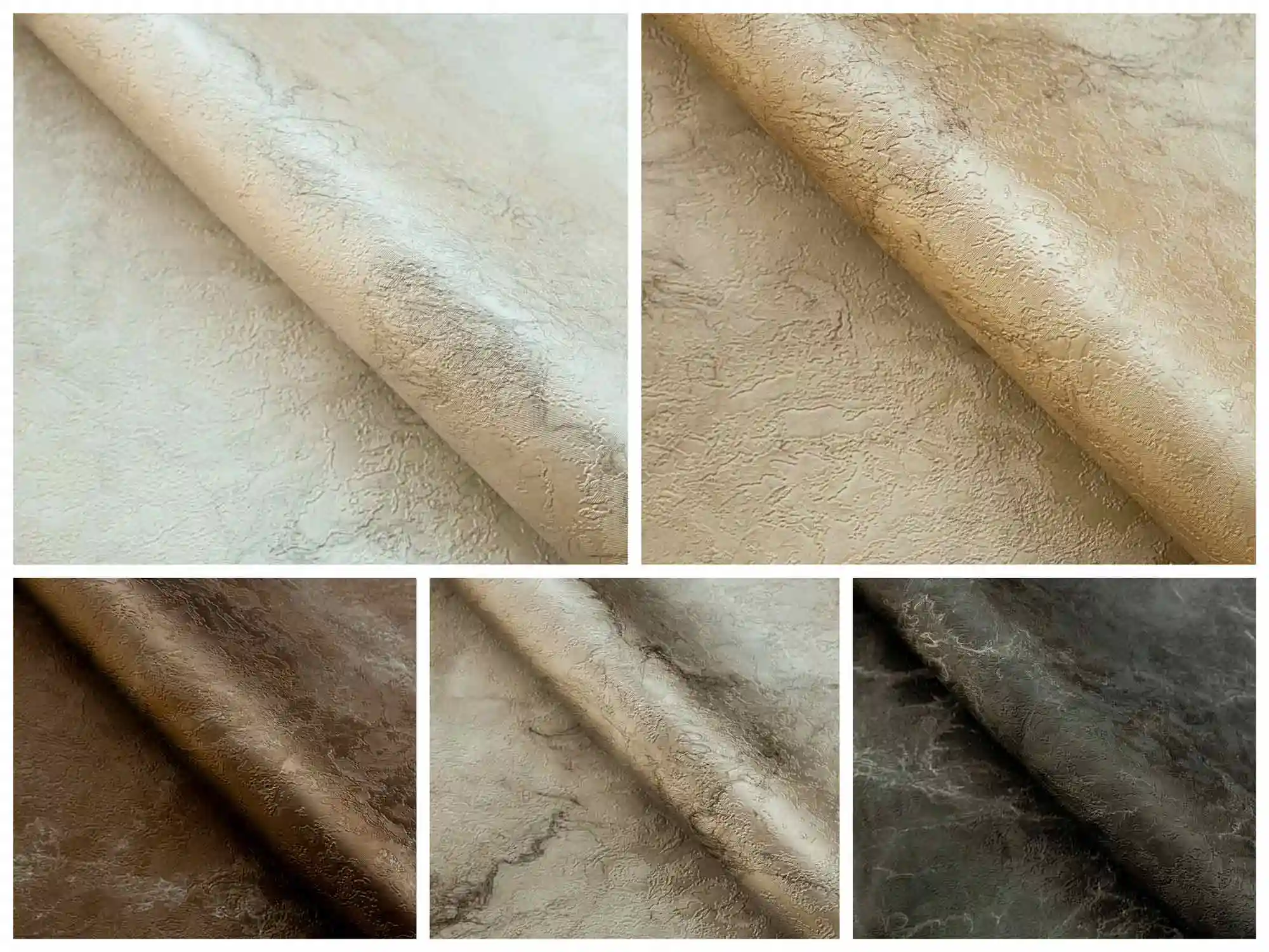 01 Carrara, 02 Travertino; 03 Emprerador, 04 Greystone, 05 Nero